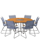 Powder coated alumium frame, a table top in bamboo and a granite center plate.