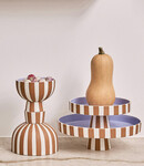 The caramel with white striped tray on foot can be used for jewelry in the bathroom, for storage in the office,