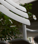 De gebogen aluminium lamellen zijn gevormd om een comfortabele zitervaring te bieden en geven de stoel een zachte uitnodigende uitstraling.