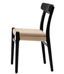 Zoals de elegant gevormde kruisvormige afdekkappen op de rugleuning en de speciale dubbel geweven zitting van papercord.