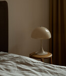 De Panthella tafellamp van Verner Panton is er in vele maten. Deze Panthella 320 is 43,8cm hoog en is verkrijgbaar in wit of beige.
