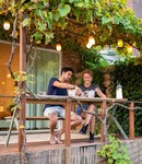 In de avond gaat de Stringlight aan die boven je warme Dutchtub Loveseat hangt terwijl de kinderen met de Guidelight de tuin verkennen.