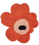 De vrolijke Unikko badmat Red-Powder van Marimekko is hand getuft van biologisch katoen (badstof). Het bloemvormige kleedje voor in de kinderkamer, badkamer of toilet voelt zacht aan met een antislip achterkant. Afmeting: 73x74cm. Kleur: oranje en roze.